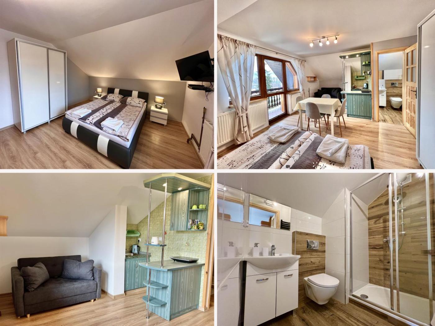 Apartament z widokiem na góry. Featuring 2 bedrooms and 1 bathroom with a shower, this apartment offers a well-fitted kitchen and a terrace. The well-equipped kitchen features a refrigerator, kitchenware, a microwave and an electric kettle. Boasting a balcony with mountain views, this apartment also provides a wardrobe and a flat-screen TV with satellite channels. The unit has 5 beds. Apartament - 5 osobowy. Powierzchnia pokoju ok.: 46 mkw. ;