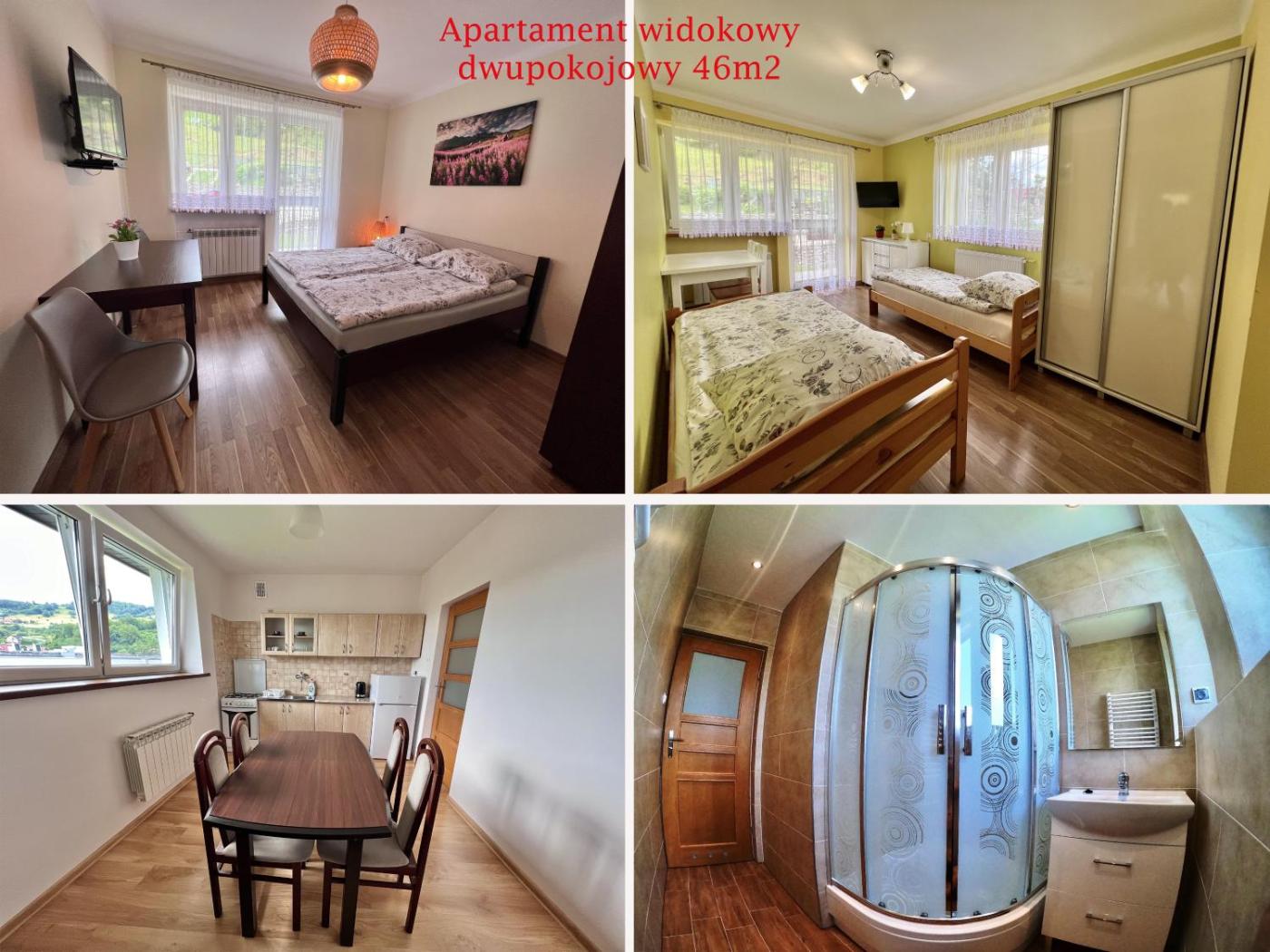 Apartament z widokiem na góry. This apartment comes with 2 bedrooms, a kitchen and 1 bathroom with a shower and a hairdryer. In the kitchen, guests will find a refrigerator, kitchenware, a microwave and an electric kettle. Boasting a balcony with mountain views, this apartment also features a wardrobe and a flat-screen TV with satellite channels. The unit has 3 beds. Apartament - 4 osobowy. Powierzchnia pokoju ok.: 46 mkw. ;