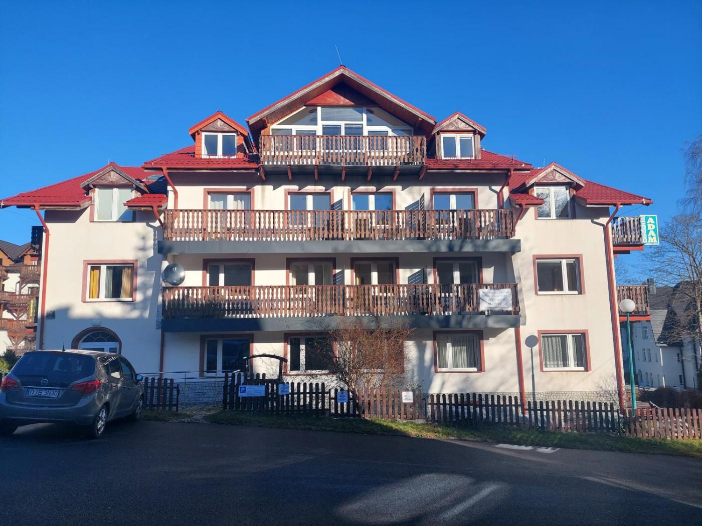 Obiekt Gościniec Adam, usytuowany w miejscowości Szklarska Poręba, oferuje ogród, prywatny parking, wspólny salon oraz taras. Odległość ważnych miejsc od obiektu: PKS Szklarska Poręba – 1 km. Oferta pensjonatu B&B obejmuje bezpośredni dostęp do stoku narciarskiego. W okolicy znajdują się ciekawe miejsca takie jak: Kolejka Izerska ( 1,8 km), Wodospad Szklarki ( 3,3 km). Oferta pensjonatu B&B obejmuje pokoje rodzinne.